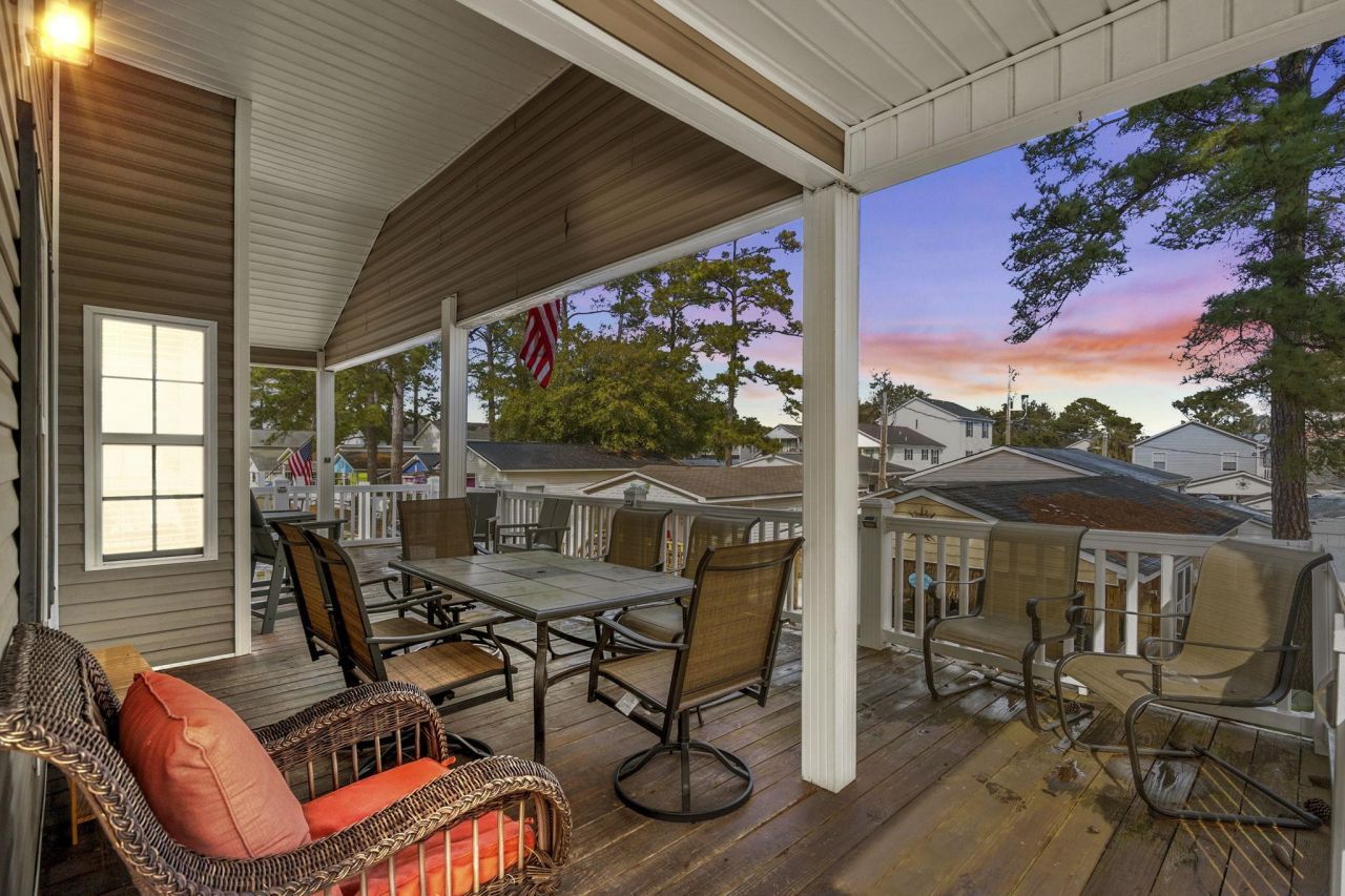 Welcome to 1659, a beautiful furnished raised beach Home 3 Bed/ 2 Bath with a Vaulted ceilings, Vinyl Siding. Hardwood Laminate floors, Ceiling fans throughout. Large Kitchen, double sink, Dining area, with breakfast bar. Stainless steel appliances- refrigerator, ceramic-top range, and dishwasher. Plenty of Kitchen cabinets and storage. Washer/dryer combo. Large primary suite (king bed) with attached bath (tub/shower combo), and vanity. Second Bath with a walk-in shower, and vanity. other bedrooms have queen beds and living room has a sofa sleeper (full). Sit back and relax on the large covered deck. Plenty of parking under the home including a great outdoor entertaining space.. Large storage shed. Come take a look today! Golf cart is not included but negotiable, seller will remove personal items and items from owner closet/garage. Roof - 2006 HVAC - new Sept. 2025 Water heater new 2024