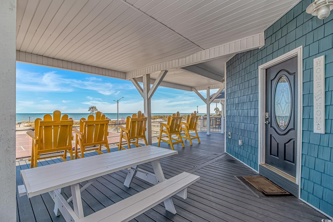 OCEAN FRONT WITH AMAZING VIEWS!!!! This very open reversed floor plan 5 Bedroom, 3 Bath raised beach house sits on the front strip along the nightly summer golf cart parade and is just a very short walk across the street to the beach. The home features a large living room and kitchen that are upstairs and has a great porch to sit and watch the world drive by on their golf carts while your drink your morning coffee or afternoon cocktails. Located in the private gated Ocean Lakes community featuring award winning amenities that focuses on being family-oriented. This home is being sold fully furnished! Call today to schedule your private showing.