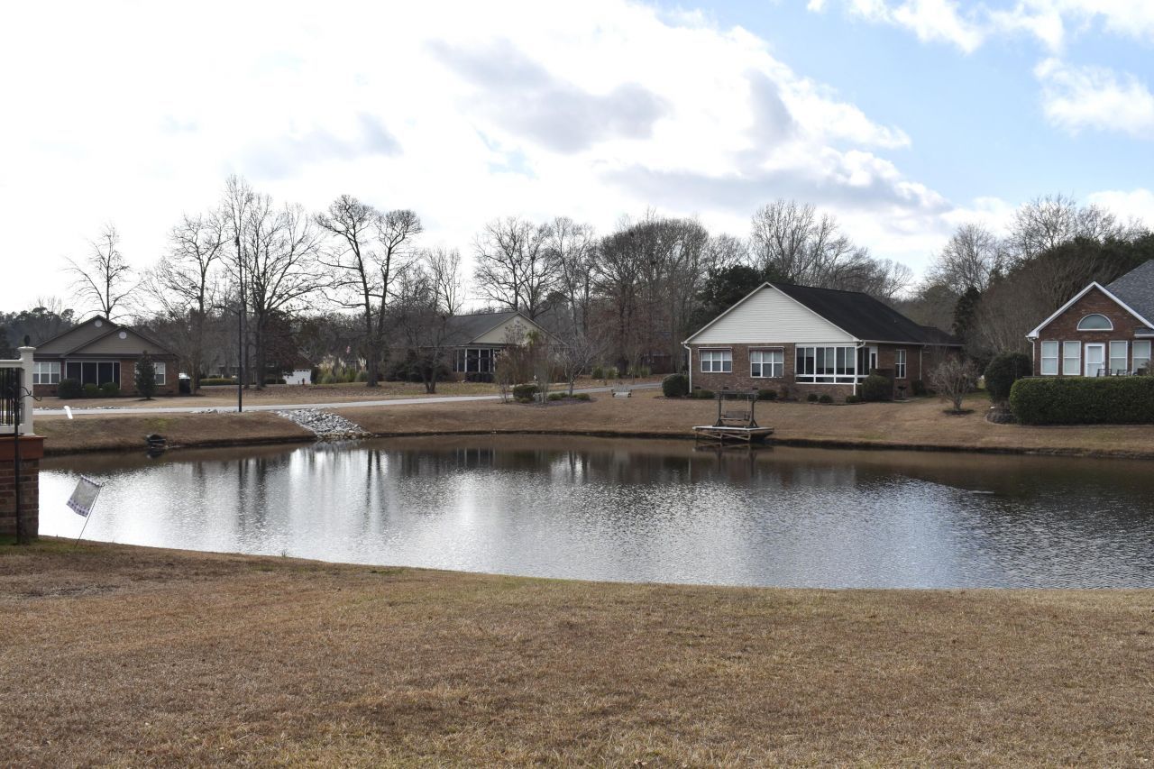 Pond building site in Wyboo Plantation . Buy now, build later, no time restrictions on starting construction. This gated lakeside community offers fishing, golf, community center, library, workout room, pool, tennis and pickleball courts, horseshoe pits, kayak launch, planned activities, Boat/ RV storage, gardens area, and miles of private roads for walking and biking. ARC approved patio home required (several plans to choose from). HOA fee includes use and care of common areas. Buyer/buyers agent to confirm school information.Seller owns several lots and would be willing to sell them as a package. Seller also owns two boat slips that may be purchased if desired.