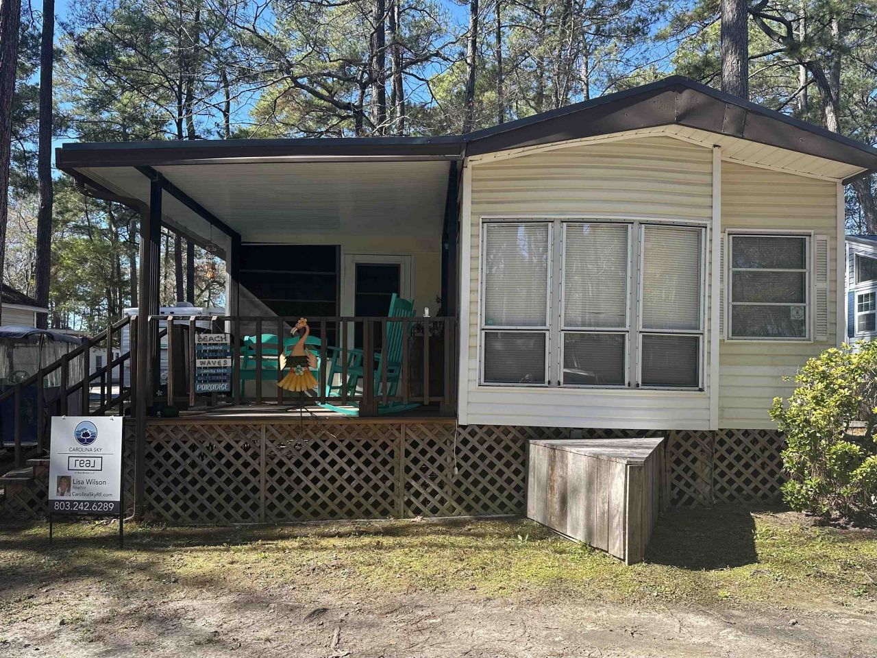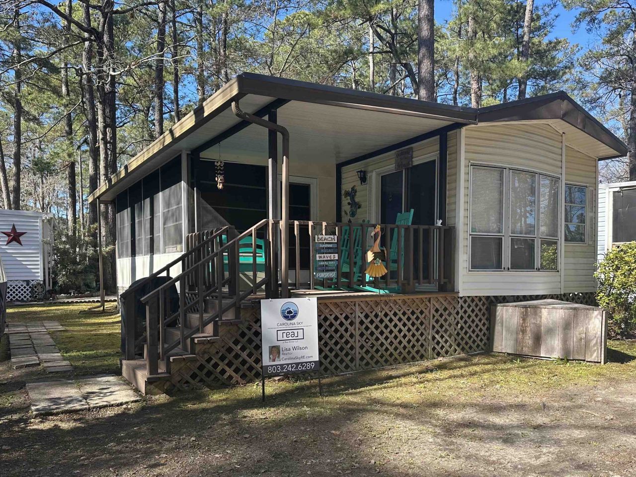 Charming 1991 Casa Villa park model with Carolina Room addition and covered front porch, being sold fully furnished and move-in ready! Located just three blocks from the beach an easy golf cart ride away in a 55+ community where both electric and gas golf carts are allowed. This well-maintained 2-bedroom, 1-bath home features washer and dryer inside the unit for added convenience. Major updates have already been completed, including a new metal roof, new HVAC system, and new hot water heater all within the last two years giving peace of mind to the next owner. Enjoy the relaxed coastal lifestyle with fantastic community amenities including a pool, splash pad for the kids, and a jump pad. Conveniently located close to shopping, dining, and the airport. No short-term or long-term rentals permitted, making this the perfect low-maintenance beach retreat for snowbirds in the winter or beach lovers in the summer. Dont miss this opportunity to own your slice of paradise just minutes from the ocean!