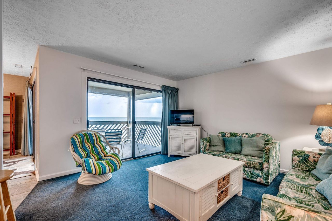 Enjoy direct oceanfront views from this top-floor condo at B7 Maritime Place, located at 618 N Waccamaw Drive in the heart of Garden City Beach. This 2-bedroom, 2-bath unit offers 1,038 heated square feet in a well-maintained low-rise building with a brick exterior and oceanfront pool. The unit features an open living and dining area with two large ocean-facing glass doors that lead to a private balcony overlooking the beach, pool, and ocean. The kitchen has been updated with gray shaker cabinets, granite countertops, and stainless steel appliances. The primary suite includes an ensuite bath, while the second bedroom has direct access to the hallway bathroom. This condo is being sold fully furnished and includes secure ground-level storage. Community amenities include an oceanfront pool, hot tub, sundeck, and private beach access. Located just 0.4 miles north of the Garden City Pier, the condo is within walking distance of restaurants, shops, live music, and entertainment. Its also a short drive to Murrells Inlet, Myrtle Beach, and area attractions like Brookgreen Gardens and Huntington Beach State Park. Whether youre looking for a vacation getaway, investment property, or full-time residence, B7 Maritime Place offers a great oceanfront opportunity in a prime location. Take a virtual tour: www.bit.ly/B7MaritimePlace