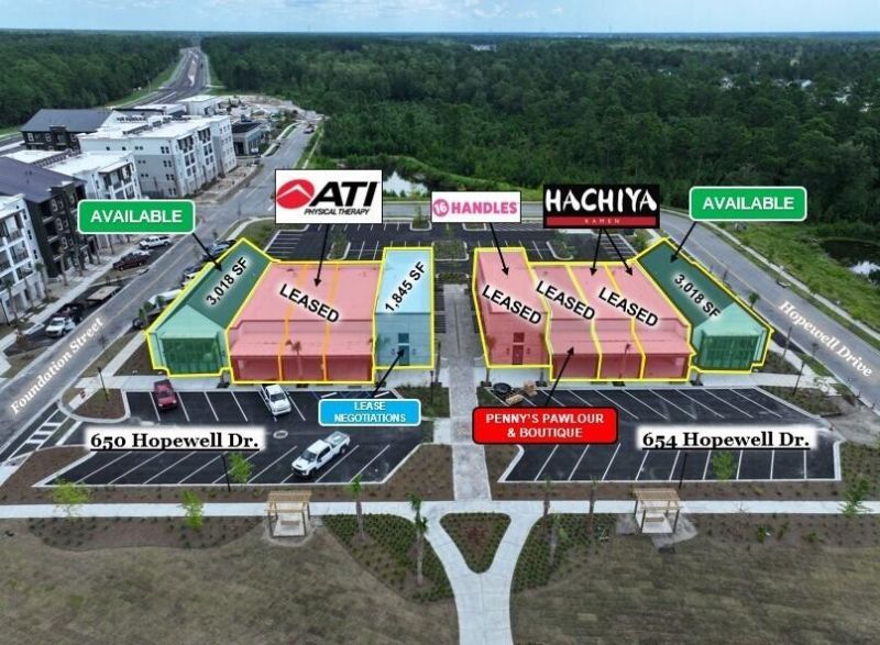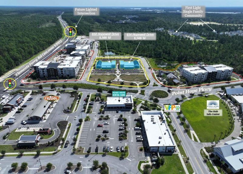 The subject property is located within the Point Hope master-planned community, positioned along Point Hope Parkway just off Clements Ferry Road, at the heart of the development's commercial district. This highly walkable location places it steps away from a variety of nearby shops and restaurants.The development features 224 multifamily units complemented by approximately 17,000 SF of retail space, distributed between two adjacent buildings.Both buildings enjoy prominent visibility upon entering the Point Hope community and benefit from ample surface parking as well as opportunities for building-mounted signage.Available units range from +/- 1,228 SF to +/- 6,700 SF and are delivered in cold dark shell condition.Contact broker for more details.