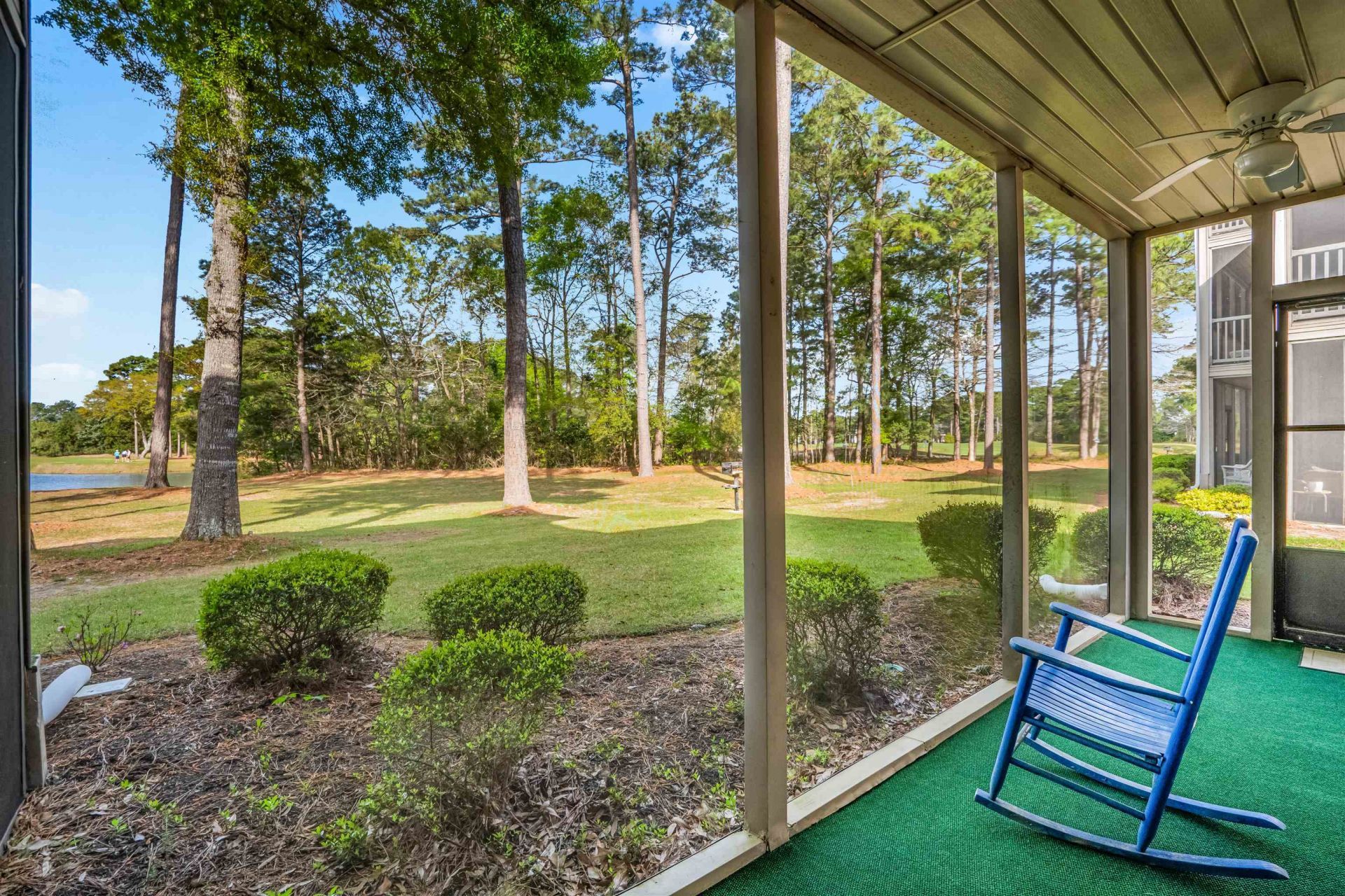 Heres your opportunity to be part of the desirable True Blue Golf community. This first-floor end unit offers a private Hideaway entrance and stunning views of the lake and the 18th hole of the True Blue golf course. This spacious three-bedroom, three full bath condo welcomes you with a foyer entry and features a flexible lockout option for the third bedroom, making it ideal for quests or rental potential. As a corner unit, it boasts additional windows that fill the open-concept floor plan with abundant natural light. The kitchen is both functional and inviting, featuring white cabinetry, a breakfast bar, recessed lighting, a GE stove, and a Frigidaire refrigerator. From the kitchen sink, you can enjoy uninterrupted views through the sliding glass doors leading to the screened porch, overlooking the serene lake and golf course. The primary suite includes a walk-in closet, ceiling fan, and private access to the screened porch through sliding glass doors- perfect for enjoying peaceful mornings or relaxing evenings with a view. Additional features include HVAC approximately 3 years old, ceiling fans in both guest bedrooms, double ceiling fans on the screened porch, extra white cabinetry with glass shelving in the dining area, and a hall closet with added shelving for storage. Located in the sought-after True Blue community, you are just a short drive from the beautiful Pawleys Island beaches, renowned restaurants, shopping, Brookgreen Gardens, Huntington Beach State Park and so much more. Dont miss your chance to enjoy coastal living with golf course views, natural beauty and convenience right at your doorstep.