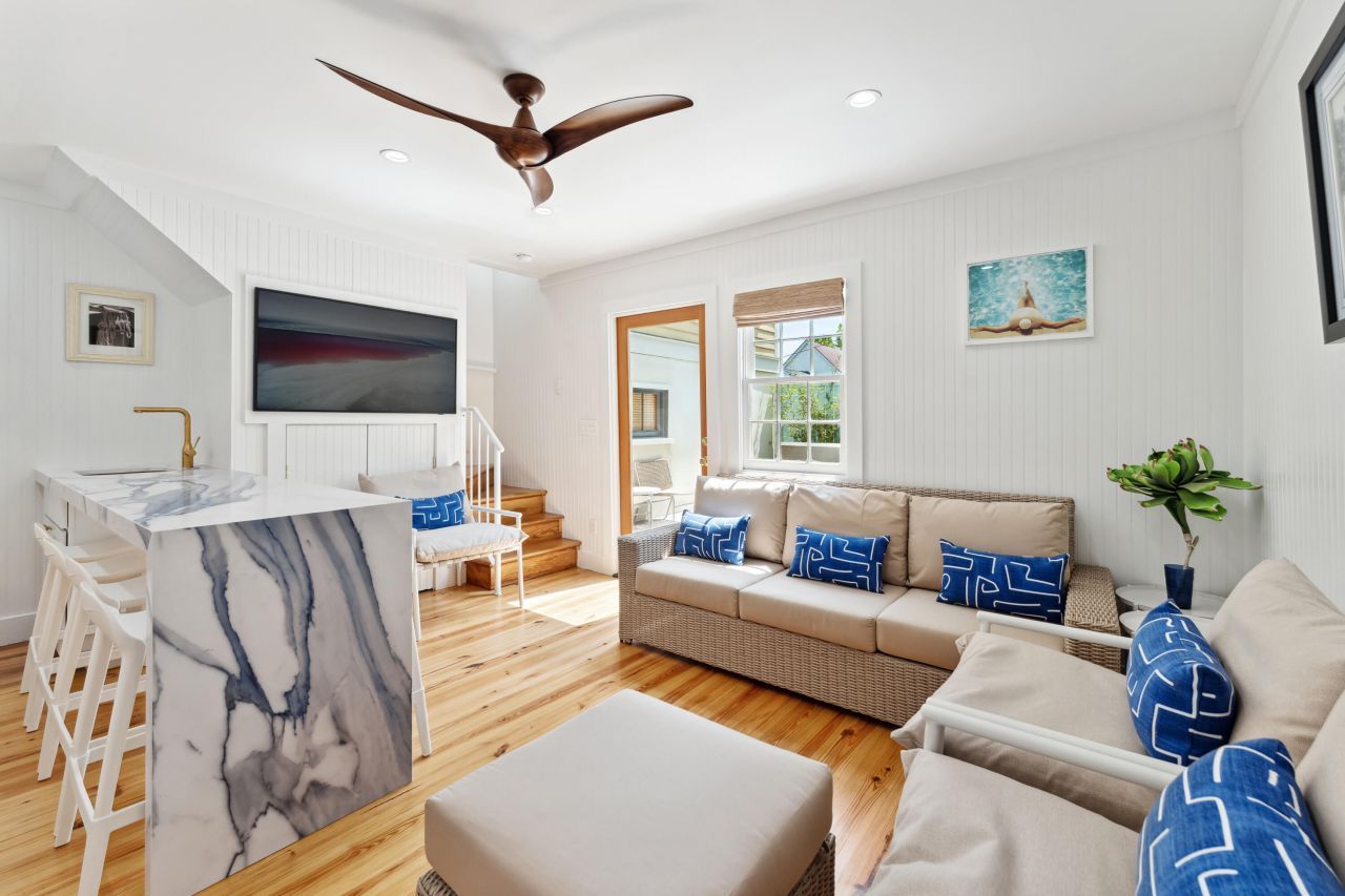 This beautifully restored 3-bedroom, 3-bath single family detached home is an active, legal short term rental. This property has been thoughtfully renovated, blending original character with high-end finishes & contemporary comfort. Inside, you'll find gorgeous hardwood floors, exposed wooden beam ceilings, & luxury designer touches throughout. The bright, elegant kitchen features white cabinetry w/ gold hardware, striking quartz countertops with dramatic blue & gray veining, & warm hardwood flooring. A sleek peninsula with bar seating, gold faucet, & open layout make this kitchen both functional and beautiful, perfect for gathering & entertaining. Each bedroom offers its own refined style & comfort, along with an en-suite bathroom. Step outside to your private fenced pool deck where asplash pool with soothing waterfall feature creates an oasis of tranquility, ideal for cooling off or relaxing in total privacy. This home also includes one off-street parking space, accessible via the driveway to the left of 65 Spring Street. Pedestrian access is available through the charming brick walkway between 65 and 67 Spring, adding to the home's classic Charleston appeal. Currently operating as an active, legal short-term rental, this property offers exceptional investment potential or a turn-key option for a primary or secondary residence in one of the city's most sought-after neighborhoods. Experience the best of Charleston living, historic charm, modern luxury, and a private retreat, all in one beautifully restored home.