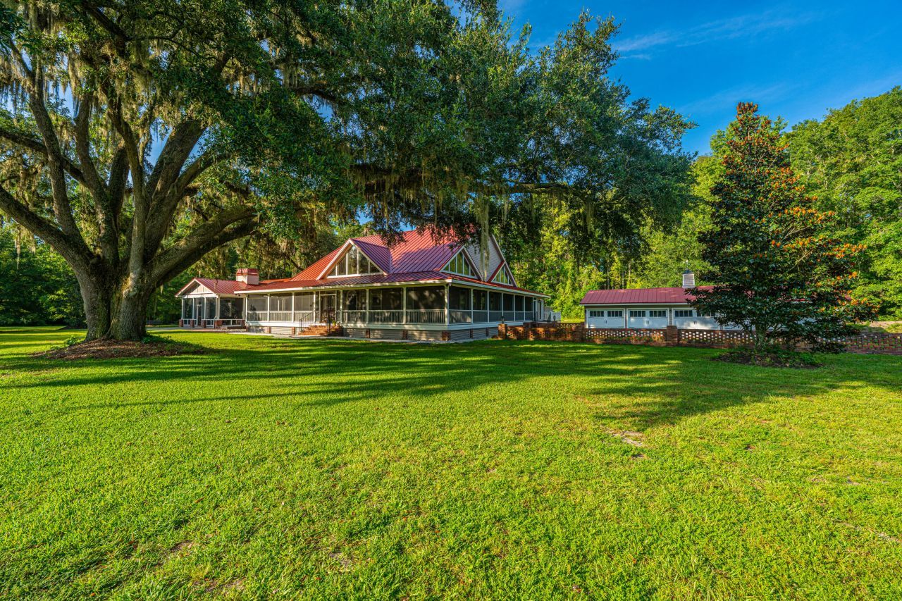 River Oaks Plantation Features Two miles of frontage on the historic Combahee River. River Oaks is a private gated 217 acre paradise, the perfect location for the outdoor lover and sportsman! This unique deep water property has a Grand Main house with a great hall perfect for entertaining. The Carolina room has a beautiful view of a covered dock with a Gated canal leading to the Combahee River. The guest house is perfect for family and friends! The many features of River Oaks include... A large screened cook shed overlooking the gated canal, a road system throughout the property, a second dock overlooking the Combahee and exterior gate, two enclosed deer condominiums perfect for hunting or wildlife observation, a 2400 sq. ft. equipment shed, a rifle range, Click MORE for details.River Oaks is located in the ACE BASIN which features the Ashepoo, Combahee and Edisto Rivers and is one of the largest undeveloped estuaries along the Atlantic Coast. Premium opportunities for Turkey and deer hunters, and great fishing from either of the two docks on a gated canal leading to the Combahee. The canal and 5 ponds on theproperty serves as a premier habitat for aquatic birds year-round, and as a resting place for migratory ducks . Although Public Landing has a boat launching ramp, the present owner has been launching his Jon boat from the graveled road leading to his private boat house and nearby dock. A second dock in River Oaks is located on the canal down a private RTV trail which terminates into a peninsula ideal for a sunset cocktail, or wine and cheese appetizer at sunset. The Combahee and exterior River gate are visible from the second dock. Two enclosed elevateddeer condominiums are located amid shooting lanes in the back of the property. Portable heaters have enabled the present owner to hunt regardless how cold the weather may be. There is a well-developed road system throughout the property to enable hunting and sightseeing. The area of River Oaks adjacent to the Combahee is a mix of wetlands, hardwood ,wetland vegetation, swamp, cypress trees, and planted pine. A 135 Yard rifle and pistol range is on the property with a heavily built commercial bullet bunker to eliminate the potential for lead contamination and to provide a safer place to zero rifles and practice shooting. As you enter the property through the electric wrought iron gate, to the right is a 2400 sq. ft. equipment shed with two electric overhead doors and adjacent to ita FEMA certified Safe-Shed storm shelter, which is a 24,000 pound concrete and steel building intended to provide safety in storms or severe tornadoes. As throughout the property, everythinghas been carefully thought out. There is a Generac backup generator that provides power to the storm shelter, which is air conditioned and heated, as well as the equipment shed and water well. The well provides water for both cleaning at the shed and irrigation. The driveway past the gate andfencing leads to the inner property where the main house, firepit, carriage house (5 car garage), and guest house are situated. All residential buildings have been continuously upgraded with additions having been added to the main house in 2014.The roof on the guest house was recently replaced in December 2024, and the roof on the main house was replaced in approximately 2020. Both roofs were installed by Professional Roofing out of Bluffton, and are under warranty. There's a graveled floor firepit area complete with picnic tables and Adirondack Chairs. A fenced garden area with raised boxes is located near thecarriage house and irrigation from the nearby well. The house Main was designed as one of the last projects of Doug Corken, a well-known Lowcountry architect. A wide screened porch with burnt poplar screen doors keeps the porch nearly bug free while you sip your mint julep under the cool breeze of the numerous overhead paddle fans. The cypress ceilings on the porch ceiling add to the aesthetics. The exterior of th