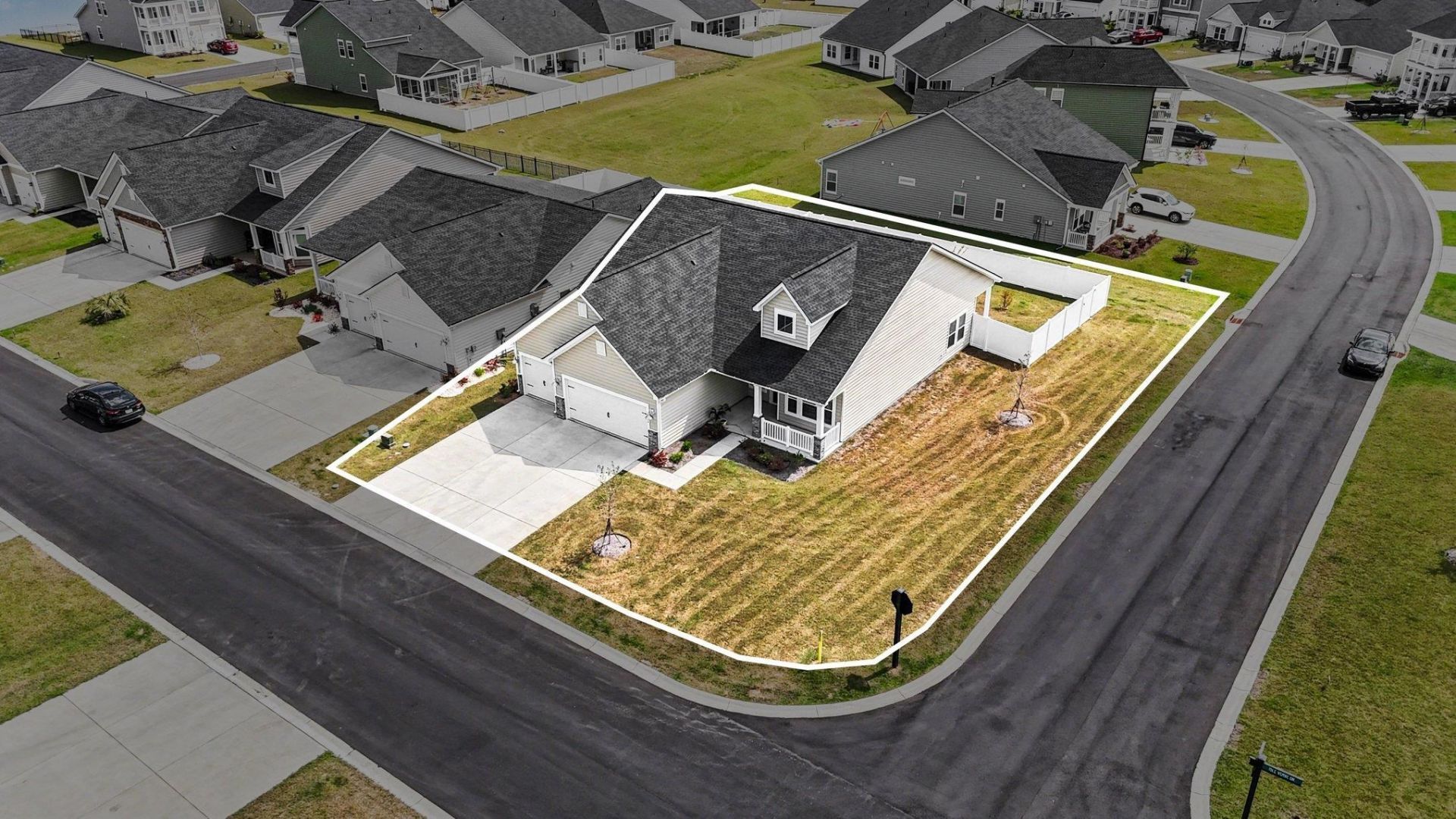 Stunning single-story, Lexington floor plan by Lennar, built in 2024 and located on a desirable CORNER LOT in Hidden Pines. This move-in ready home features an open-concept layout with vaulted ceilings, a spacious Great Room, and a gourmet kitchen with a large island, granite countertops, tile backsplash, and stainless-steel appliances including a gas range. Enjoy both a formal dining area and a bright breakfast nook. The private primary suite offers a walk-in closet and a spa-like bath with dual vanities and a fully tiled glass-enclosed shower. Outdoor living is equally impressive. Enjoy the covered lanai overlooking a fenced, private backyard, perfect for relaxing, entertaining, or accommodating pets. The rare three-car garage offers ample space for vehicles, a golf cart, or even a workshop. Upgrades include plantation shutters and modern lighting. Community amenities feature a pool, fire pit, community garden and walking trails, all in the Carolina Forest school district and conveniently located near shopping, dining, golf, and less than 10 miles to the beach. Modern features such as natural gas, a tankless water heater, and the advantages of newer construction complete the package.