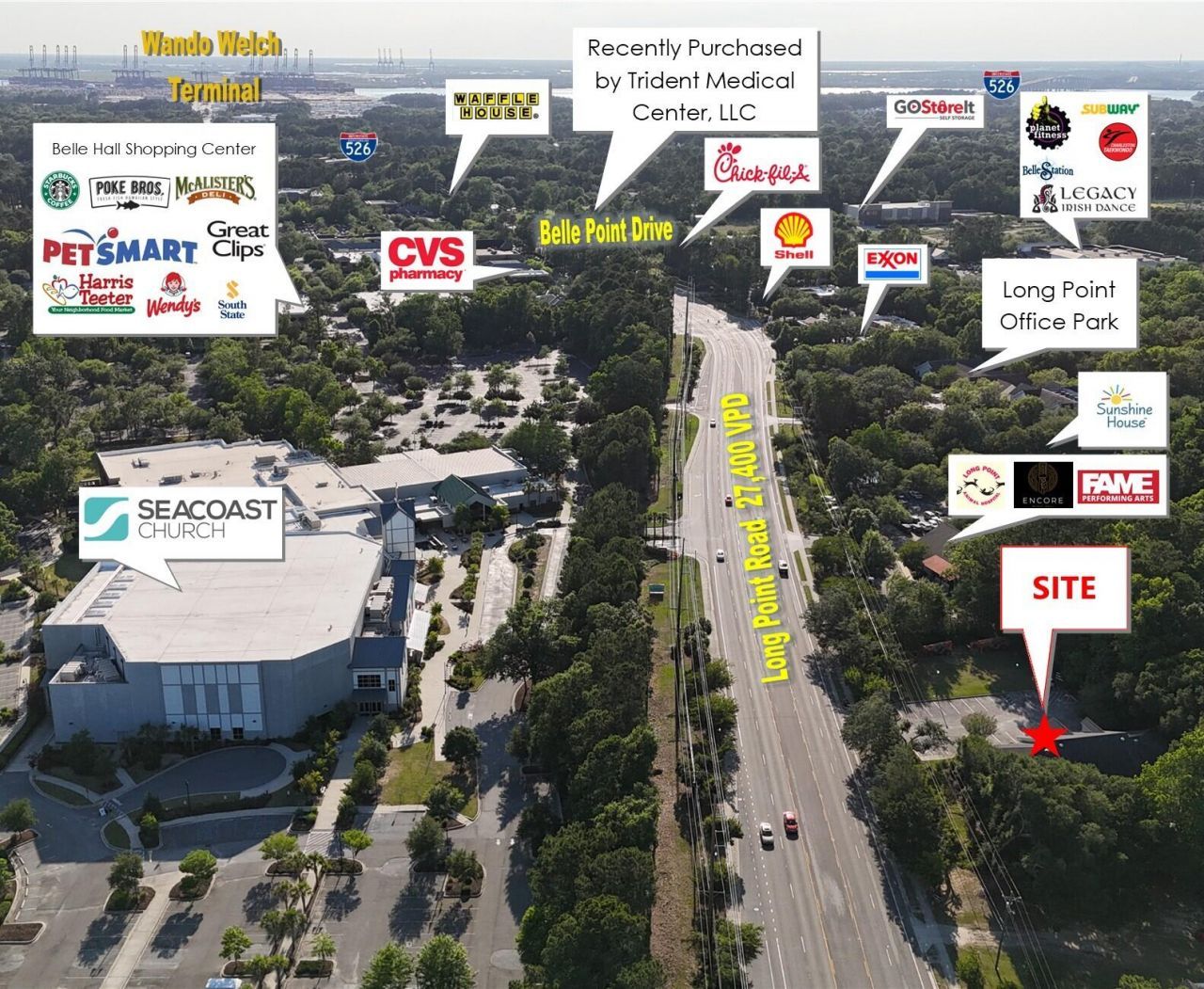 Oswald Cooke & Associates is pleased to present a fully leased NNN investment opportunity for sale, ideal for a qualified investor.This offering features a +/-7,300 SF single-story office building situated on a 1-acre parcel. Strategically located on Long Point Road (27,400 VPD) just off Interstate 526 in Mount Pleasant, the property enjoys exceptional visibility and accessibility. Long Point Road is the first exit heading east from North Charleston and Daniel Island, crossing the Cooper and Wando Rivers, and serves as a primary route to the Wando Welch Shipping Terminal.The corridor is a vital connector for commuters heading to Highway 17 and nearby residential communities and developments to the north.The property is located near the Belle Hall Shopping Center, anchored by national retailers including Harris Teeter, PetSmart, Stein Mart, CVS, Wells Fargo, and Starbucks. The surrounding area also features Class-A office buildings and a mix of townhome and apartment communities.Additional traffic drivers in the immediate vicinity include Belle Hall Elementary School, the Jones Center-Mount Pleasant Recreation Facility, East Cooper Baptist Church, and Seacoast Church--recognized as one of the ''Ten Most Influential Churches in the United States.''