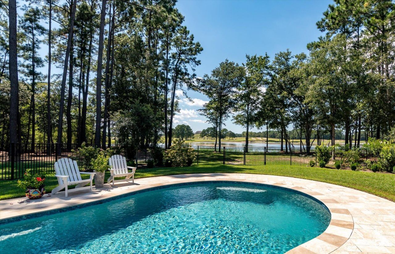 Bulls Bay is one of the South's most exclusive private golf enclaves, home to a select circle of the region's most accomplished business leaders and visionaries. Ownership of this residence provides priority membership consideration upon application and approval. Set on 1.78 private acres, the home offers golf course and lake views with exceptional privacy. The open floor plan features a tiled foyer, dining room, great room with stone fireplace, wet bar, and a chef's kitchen with custom cabinetry and quartz countertops. The primary suite and guest bedrooms have private baths, with bonus space above the garages. Outdoors, an inground saltwater pool, mature gardens, and outdoor living areas overlook the 10th-13th holes, creating a rare Bulls Bay golf estate.
