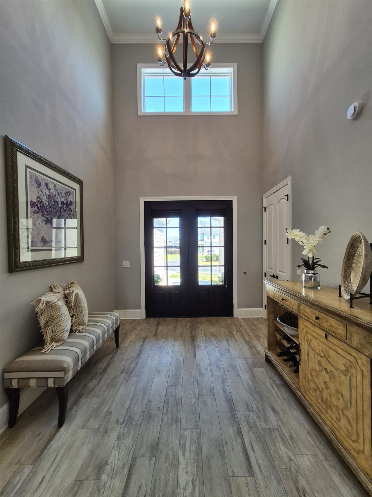 Enjoy single-level living at 8004 East Bay Court, a meticulously designed and maintained 3100+ square foot, 4 bedroom/2.5 bath home in the exclusive Waterway Palms Plantation, a gated Intracoastal Waterway community. On a perfect cul-de-sac and pond lot with an incredible view of the large pond, this house delivers on every level. Upon entering the impressive 8.5 tall double doors into the foyer, with its soaring ceiling, youre greeted with an expansive view through the great room and Carolina room. The great room is spacious and open, with coffered and tray ceilings delineating the spaces, and wood-look tile floors to pull it all together. The focal point of the living area is the elegant fireplace, perfectly framed by its marble surround and molding that merges with the coffered ceiling above. The Carolina room is open to the living area and boasts three large windows, flooding the house with light. The adjacent dining area is grounded by three more large windows, with two chandeliers hanging from the tray ceiling, and a picture-frame molding accent wall. The kitchen has an immense 11 x 5 breakfast bar/work island, with ample cabinetry, and a wide expanse of white Calcutta-like quartzite and black granite bookends on the island with book shelves on one end and a bank of drawers on the other. Built-in stainless appliances, a custom range hood, and lighted glass cabinetry to the ceiling complete this beautiful and efficient work space. And the pantry - this walk-in pantry is definitely up to the job of organizing all of your kitchen needs, and even has a closet within to hide your cleaning supplies. The screened porch is accessed by a glass door from the dining area, and has a stunning view of the pond plus another fireplace, raised to table height, within a stone surround. Theres a built-in Napoleon propane barbeque with a separate searing grill and a granite counter in the fenced backyard to facilitate family meals either on the porch or on the generous paver patio. Back in the house, there are three bedrooms on the first floor and a bonus room/bedroom with its own half bath on the second floor. The primary faces the back of the home to take advantage of that fabulous pond view and has five windows - three on the back wall and two others framing the bed. The adjoining bath has two sinks, each in its own cabinetry, and an open tile shower with a linen closet facing it, so you dont have to go far to grab a towel. The walk-in closet has plenty of hanging space, plus dedicated shelving for shoes and purses. Two guest bedrooms, each with large closets, are tucked on their own hallway and share a full bath. Off the kitchen lies the laundry room, with a convenient sink, more cabinetry and a marble-look quartz counter, plus a double-door closet. The stairs to the light-filled bonus room, which has its own bath, are off the laundry room. The two-car garage has flooring tiles throughout, and is well-organized with hanging storage and an additio