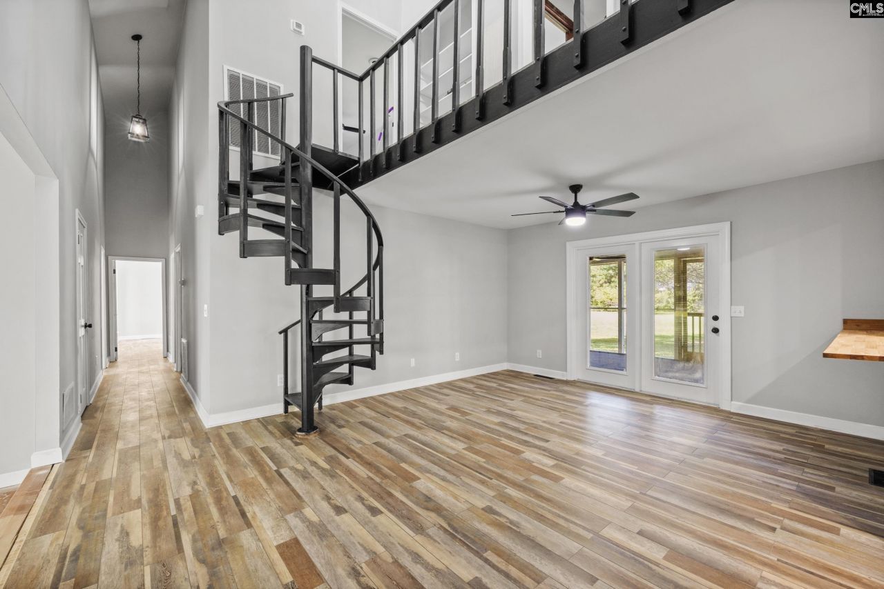 Escape to peaceful country living on this rare 2-acre retreat! This sprawling, mostly single-level home boasts a one-of-a-kind layout with custom touches and modern upgrades throughout. Whether you're dreaming of relaxing by your private pool or hosting family gatherings on a huge screened-in porch, this property delivers space, charm, and functionality.Out back, enjoy your large in-ground vinyl-lined pool framed by crepe myrtles, oak trees, and fruit trees-your own private paradise. Inside, vaulted ceilings add dramatic height and flow across an open-concept design. Step through the welcoming foyer into a sunken great room anchored by a striking stone wood-burning fireplace. At the center of the home, a gorgeous spiral staircase catches your eye from almost every angle and brings architectural elegance to the space.The updated kitchen includes new cabinetry, butcher block counters, a sleek cooktop, tile backsplash, and a bar area that connects effortlessly to the dining room-perfect for entertaining with ease. Upstairs, two spacious bedrooms are linked by a Jack-and-Jill bath with a separate water closet for privacy. Down the main hallway, you'll find additional bedrooms, bathrooms, and a flexible office space, all leading to the expansive master suite.The primary suite is a showstopper: skylights, sliding glass doors that open directly to the screened porch, and a massive en suite bath with dual vanities, walk-in closet, and its own unique flair. Throughout the home, luxury vinyl plank floors gives you durability and style-no carpet anywhere.But that's not all-this property also includes a fully functional detached guest suite, complete with its own kitchen, living room, bathroom, and two bedrooms. It even has a separate power connection and meter, giving true independence and the potential for rental income, in-law living, or guest hospitality. Disclaimer: CMLS has not reviewed and, therefore, does not endorse vendors who may appear in listings.
