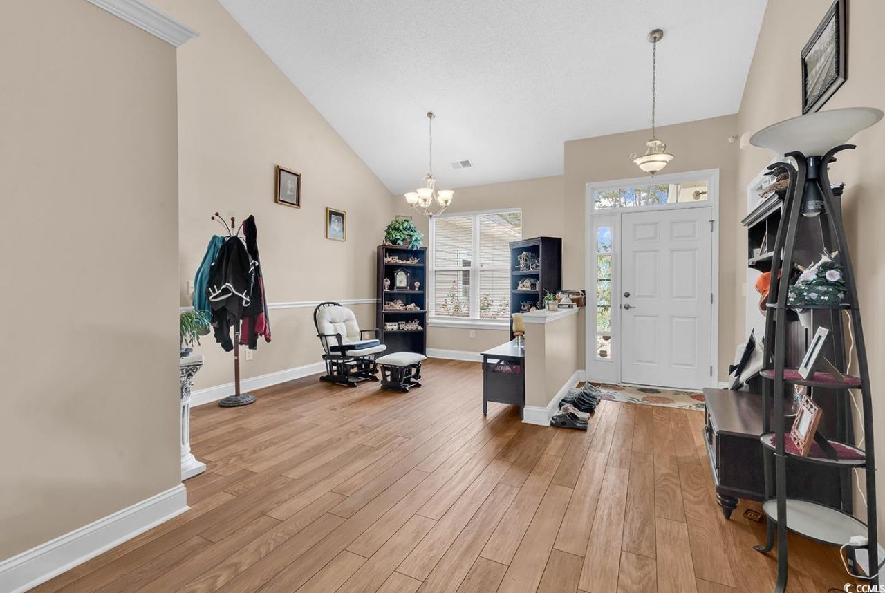 MYRTLE TRACE SOUTH, 55 PLUS COMMUNITY CHECK OUT THIS HOME!! Schedule your showing today at 827 Helms Way, Myrtle Trace South, a distinguished community designed for individuals aged 55 and over. You are invited to explore the Charleston II model, which encompasses three bedrooms, two bathrooms, an office/den, and a two-car garage, all situated on a private and premium lot. Upon entry, one will find the formal dining room located to the right. To the left, a corridor leads to two nice-sized bedrooms and the main bathroom. The living room is characterized by its impressive vaulted ceiling and a doorway that connects to the den/office. The kitchen is fully equipped with all necessary appliances, features a decorative backsplash, a breakfast bar, and a charming morning room. The primary bedroom is positioned on the opposite side of the residence, offering a ceiling fan, a spacious sitting area, and a walk-in closet. The laundry room is conveniently outfitted with a washer and dryer. Residents are invited to unwind on the private patio, where they may enjoy reading a book while observing the local birdlife. Some of the extras in this home are hurricane panels for all windows, a screen for the garage door, alarm system, outlet for generator and MORE!! Myrtle Trace South offers low homeowner association dues that include lawn mowing. The community is equipped with a clubhouse and pool, alongside a variety of planned activities. Strategically located between Highway 501 and Highway 544, this home provides effortless access to Burning Ridge Golf Course, Conway Medical Center, Walmart, Coastal Carolina University, Tanger Outlets, Historic Conway, and the numerous attractions of Myrtle Beach, including access to the beach itself.