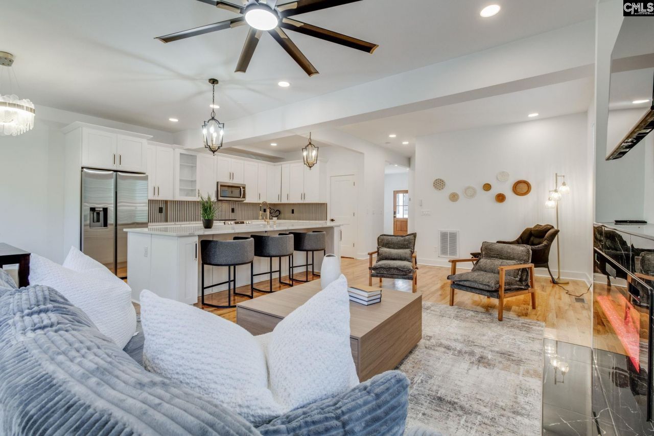 Welcome to this exquisitely renovated Charleston-style residence, offering timeless charm, modern sophistication, and a fully furnished, luxury move-in-ready experience. A classic front porch welcomes you into a beautifully appointed interior featuring hardwood flooring throughout the main level. The expansive great room showcases soaring ceilings and a cozy fireplace, flowing seamlessly into the designer kitchen with a large quartz island, pantry, and generous workspace-perfect for both everyday living and entertaining. The main level also includes a well-appointed bedroom, full bath, and convenient laundry room, allowing for flexible living arrangements. Upstairs, the primary suite features an elegant en-suite bath and walk-in closet, while a second upstairs bedroom offers a private bath, dual closets, and balcony access-ideal as an additional primary-style suite. A third upstairs bedroom completes the upper level. Thoughtfully curated, impeccably furnished, and designed for comfort and style, this home delivers effortless luxury in every detail. Schedule your private showing today. Disclaimer: CMLS has not reviewed and, therefore, does not endorse vendors who may appear in listings.