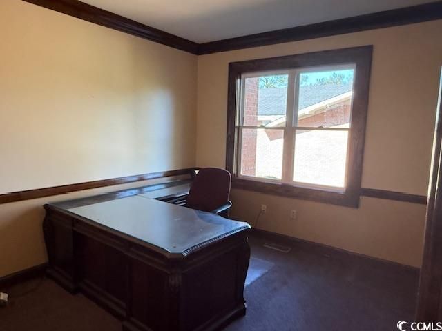 1650 SF of professional office space in downtown Conway. Includes 8 individual offices, reception area, two bathrooms, two small kitchenets. Multiple accesses. Shared parking.