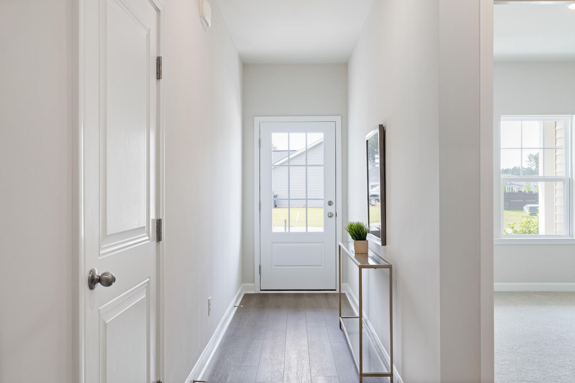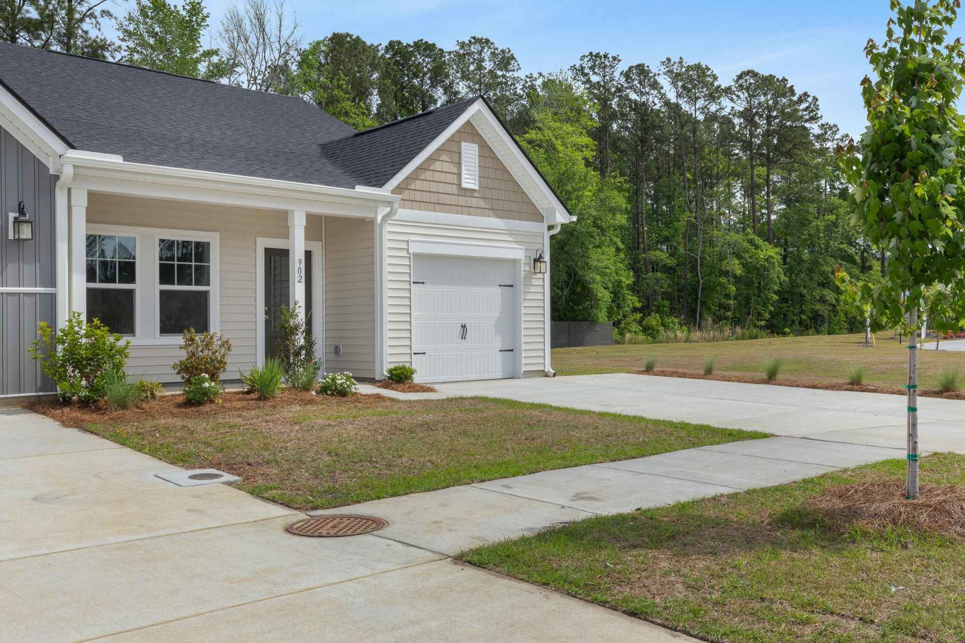 This two bedroom two bathroom end unit villa has a spacious backyard and beautiful front porch perfect for enjoying the lowcountry weather. The home backs to a dense treeline for added privacy in the back. All on one floor, this home has been designed with our stunning Milan design collection. 42'' grey shaker cabinets in the kitchen, quartz countertops, designer white backsplash make a stunning display. The primary suite is towards the back of the home, and its en suite bathroom has tile flooring, a tile zero entry shower, dual vanities with quartz tops, and walk in closet.