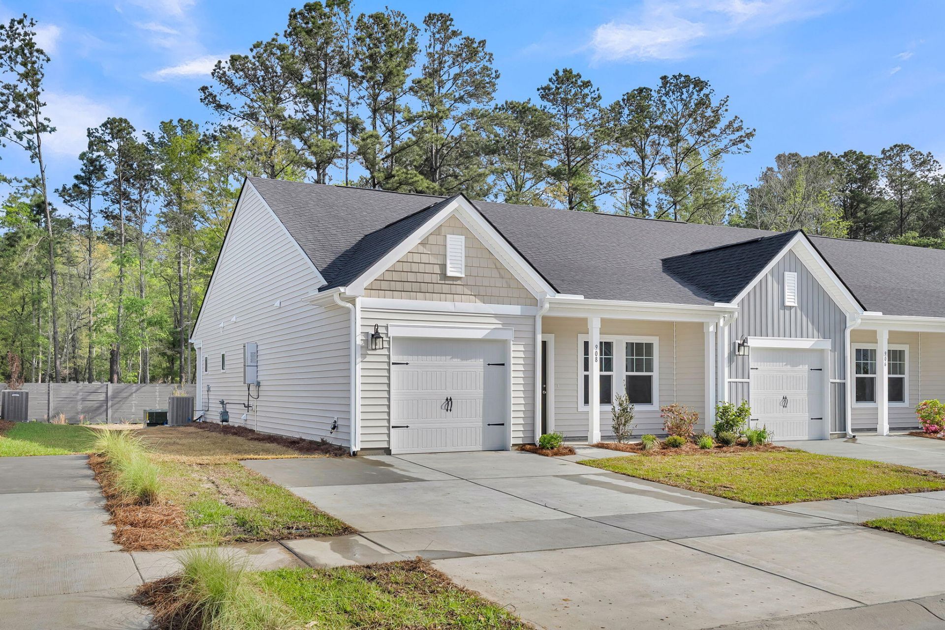 This beautifully designed two bedroom, two bathroom end unit villa offers an inviting and airy atmosphere, enhanced by a spacious backyard and a charming front porch perfect for savoring the Lowcountry weather. The home backs up to a dense treeline, offering added privacy and a peaceful natural backdrop. Everything is thoughtfully arranged on one level, and the interior showcases Ashton Woods' stunning Timeless design collection.The kitchen features bright white 42 inch shaker cabinets, quartz countertops, and a designer white backsplash that creates a clean and elegant focal point. The primary suite is quietly positioned at the back of the villa and includes an en suite bathroom with tile flooring, a zero entry tiled shower, dual quartz topped vanities, and a generous walk in closet.Beyond the home itself, living in Hammock Walk offers an exceptional lifestyle tailored for active adults who value comfort, connection, and everyday enjoyment. As one of Nexton's newest 55 plus communities, Hammock Walk provides walking trails that weave past scenic ponds, comfortable seating areas, and beautifully landscaped surroundings, ideal for morning strolls or evening relaxation. Residents enjoy brand new pickleball courts, perfect for friendly matches and staying active, along with a dedicated dog park where pets can run and play freely. These amenities are intentionally designed to create a welcoming and social environment where neighbors naturally connect and enjoy a fulfilling daily rhythm. Situated within the award winning Nexton master planned community, Hammock Walk benefits from a location celebrated for its walkability, thoughtful design, and vibrant Lowcountry lifestyle. Nexton offers an impressive mix of restaurants, shopping, parks, green spaces, and miles of interconnected trails. Its modern planning, convenient access to Interstate 26, and proximity to Summerville's charming historic district make it one of the most desirable places to live in the Charleston area. With more than 20 miles of trails, abundant outdoor recreation, and beautifully crafted neighborhoods, Nexton blends natural beauty with everyday convenience and community spirit in a way that few places can match.Together, this home, Hammock Walk, and the Nexton community create an ideal combination of comfort, style, privacy, and lifestyle appeal that is truly hard to find.