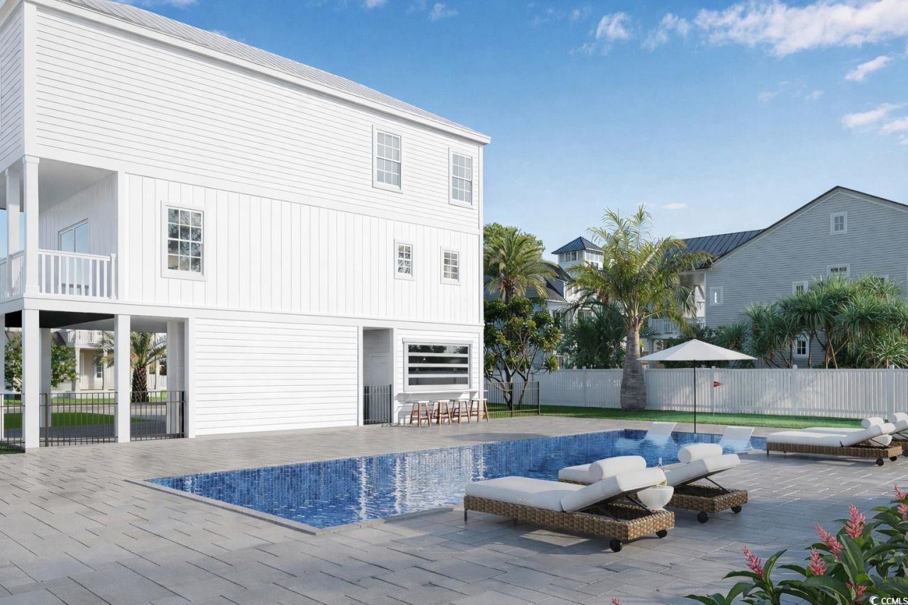Discover this brand-new construction 5-bedroom, 5.5-bath coastal retreat just one block away from the beach featuring an in-ground saltwater pool, anticipated for completion in late spring. Designed for both comfort and investment potential, this home offers two spacious primary suites and can comfortably accommodate large groups, making it ideal for short-term rental use. High-end finishes throughout include two separate living areas, a putting green, a service bar window for entertaining, and a modern beach inspired design that requires no upgrades. The ground level includes covered parking, an outdoor shower, and a finished ground-floor space suitable for an additional bedroom, golf cart storage, or a flexible entertainment area. Enjoy an enclosed staircase that leads to the main living level, showcasing an open-concept kitchen and living room with stainless steel appliances, quartz countertops, soft-close cabinetry, a breakfast bar, and abundant natural light. This level also features a powder room, a walk-out covered balcony perfect for morning coffee or evening sunsets, and a primary suite with a fully tiled, glass-enclosed shower and dual vanities. The third floor offers a loft or office flex space, three additional bedrooms, and two full bathrooms with dual vanities. Located east of Highway 17 in the highly sought-after Surfside Beach rental district, short-term rentals are permitted. Just 0.1 miles from the beach, enjoy easy access by foot or golf cart. Surfside Beach is known for its public beach access, Ocean Boulevard parking, new restaurants, a recently completed pier, parks, library, tennis courts, and more. Dont miss this rare opportunity to own a turn-key beach home in one of Surfside Beachs most desirable locationsjust in time for the season. Photos shown are of a completed model home with the same floor plan. Ask about are fully furnished airbnb ready options!