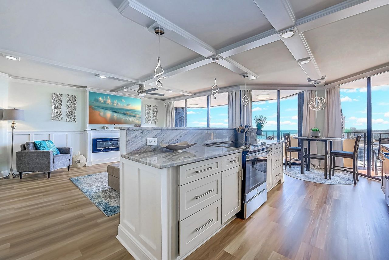 Welcome to this exquisitely renovated condo in the prestigious Maisons-sur-Mer in Myrtle Beach, offering breathtaking ocean and sunset views! Recently Completed (new patio sliders on order), this condo boasts a full-scale renovation with luxury upgrades throughout and generates strong rental income, making it an excellent investment opportunity as well as a personal coastal retreat. Key Renovations: Open Concept Design: The interior kitchen wall was removed to create a spacious flow from the kitchen to the living area, perfect for entertaining. Updated Ceilings & Walls: Popcorn ceilings were removed, and slick ceilings now extend throughout the unit. The master suite wall was straightened to enhance the kitchen layout, and wainscoting and custom mirrors have been added in the dining area. Stunning Kitchen Remodel: Features all-new cabinetry, a large island with a stove/oven placement, LED-lit coffered ceilings, and granite countertops. A sleek kitchen backsplash adds a stylish touch. Elegant Bathroom Renovations: Both the master and guest bathrooms have been completely remodeled, including walk-in tiled showers with glass enclosures, new vanity cabinets with granite tops, double sinks, and linen cabinets. Masterful Closets & Laundry Room: Custom-built closets in the master and guest bedrooms, along with new cabinets in the laundry room, offer ample storage space. Stylish Interior Upgrades: Interior doors, electrical outlets, switches, and fixtures were replaced, and LED lighting was added in coffered ceilings and crown molding with LED rope lighting in the living room. Luxury Flooring & Fireplace: Durable LVP flooring flows throughout the unit, and an electric fireplace with a custom buildout and granite top creates a cozy ambiance. Additional Details: Crown molding, drapery pockets, dimmer switches, new baseboards, and shoe molding complete the modernized look of this Masions-sur-Mer condo. Maisons-sur-Mer Amenities: Maisons-sur-Mer is one of the most sought-after oceanfront high-rises in Myrtle Beach, offering a luxurious array of amenities: Oceanfront Pool & Sundeck: Enjoy a refreshing swim or relax with stunning ocean views. Private Beach Access: Direct access to the sandy shores of Myrtle Beach, just steps away. Tennis Courts & Fitness Center: Stay active with well-maintained tennis courts and a state-of-the-art fitness facility. On-Site Restaurant & Bar: Convenient dining options with a bar and restaurant on the premises. 24-Hour Security: Feel safe and secure with 24-hour security manned security. Game & Media Rooms: Perfect for entertainment and leisure, including a media room for movie nights and social gatherings. Parking Garage & Guest Parking: Covered parking for residents and plenty of parking options for guests. This beautifully renovated Maisons-sur-Mer condo is move-in ready, offering the perfect blend of luxury living, strong rental income potential, and the ultimate coastal lifestyle. Dont miss your chance to own this ocean