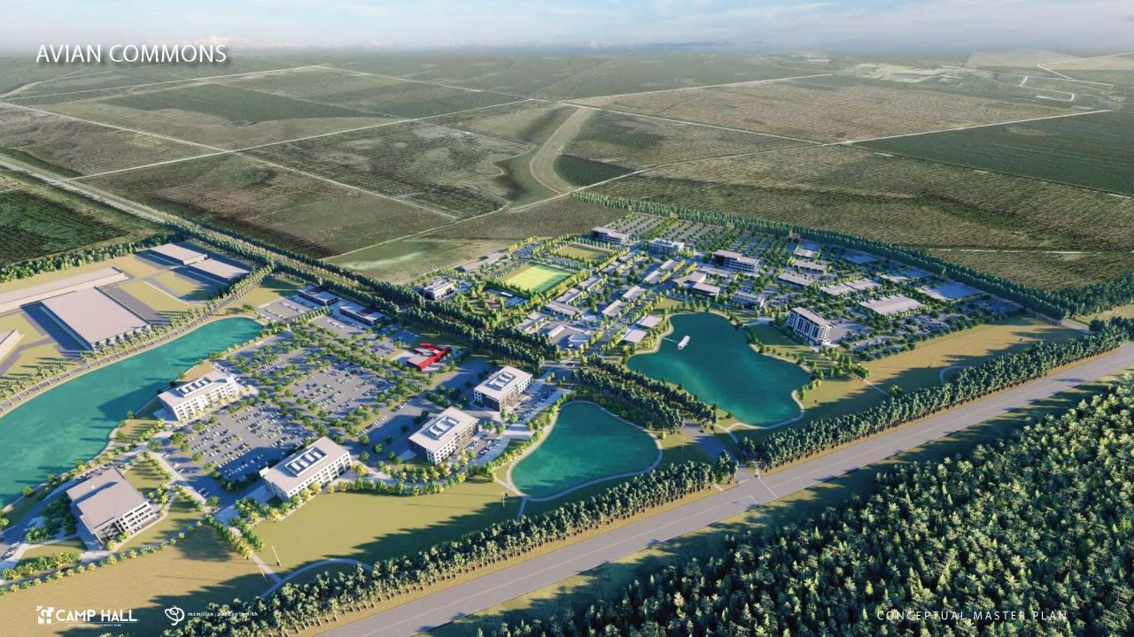 Camp Hall is a 6,800-acre world class commerce park, designed to help recruit newbusiness, grow existing industry, and to improve the Charleston business climate. Atthe core of Camp Hall is Avian Commons, with 10 acres of fully-entitled land for sale inPhase 1, it will become the retail + office center of this exciting new community.The vision is focused on delivering a thriving collection of small businesses andconveniences designed to meet the modern demands of the workforce and helpbalance the necessities of daily life. And that workforce is booming: there are +/-4,500 Volvo Car USA employees currently on site, and an industrial footprint of 5million square feet. Camp Hall is projected to generate nearly 9 million square feet ofadditional building facilities by 2035 as it continues to diversify its industry mix, andwill have +/- 15,000 daily workers on site.Avian Commons will be the heart of Camp Hall, where employees can easily connect -to everyday errands, to nature, and to each other. This is the backdrop for businessesseeking to serve the workforce and become a foundational part of Camp Hall's future.