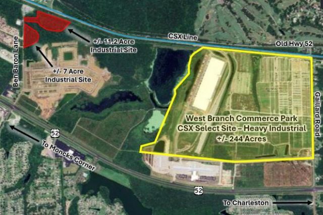 Two light industrial tracts located at the end of Ben Baron Road. Parcel part of a larger a 687.7 acre tract. Zoning: Agricultural / Industrial / Residential. This parcel includes a portion of the following tax map number: 162-00-01-039. Also see MLS # 1207457.DIRECTIONS: From downtown Charleston, take I-26 W toward N. Charleston / Columbia. After 11.2 miles, take the Ashley Phosphate Road exit (209B-A) toward US-52 / Goose Creek / Moncks Corner. Merge onto US-52 W via Exit 209A toward Goose Creek / Moncks Corner. After 14.7 miles, turn right onto Gaillard Road.