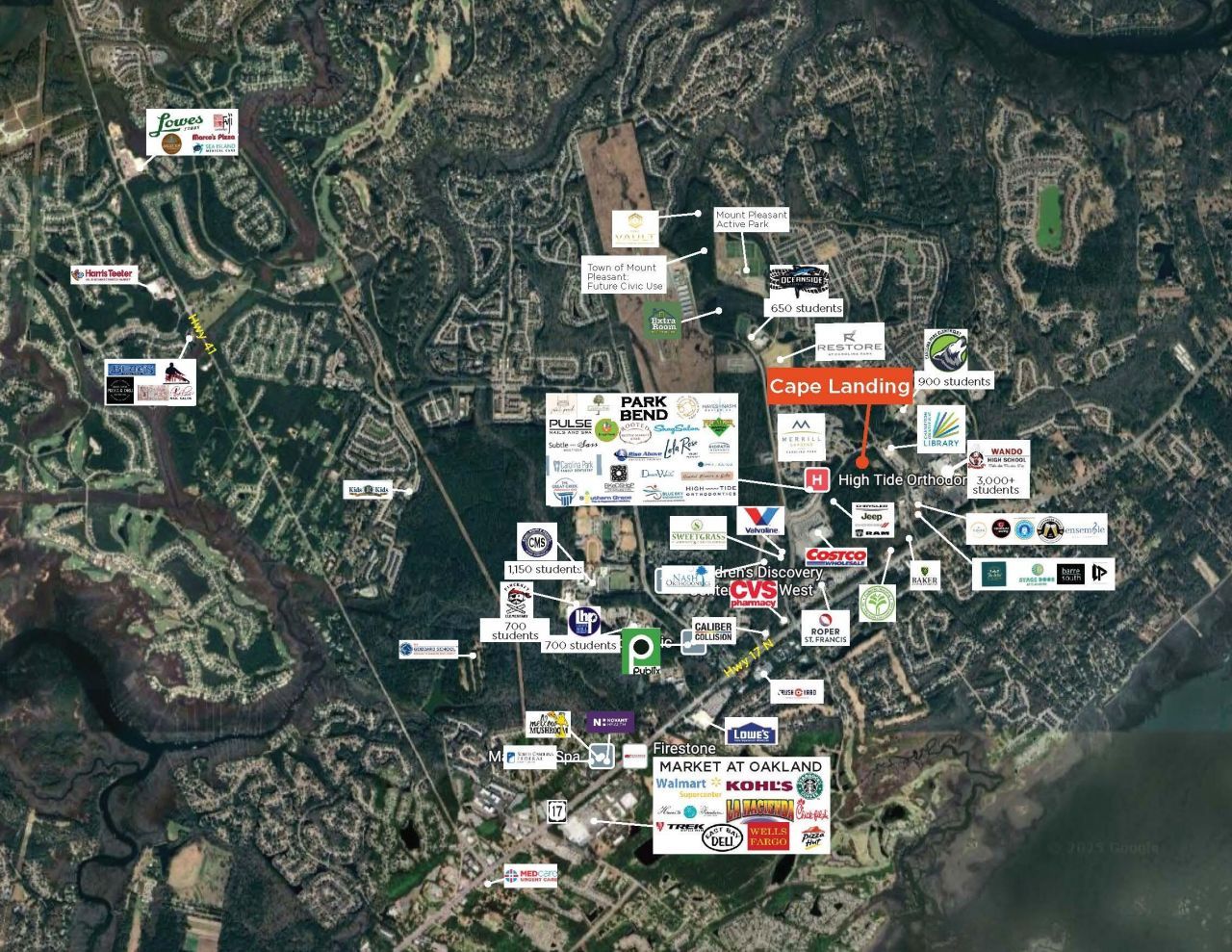 Cape Landing is a 25-acre development positioned in the heart of Carolina Park at the corner of Carolina Park Blvd. and Park Avenue Blvd. This multi-building project will offer opportunities for retail, restaurant, medical and office tenants. This is an excellent opportunity to serve the North Mount Pleasant market and capitalize on it's high growth and dense population.