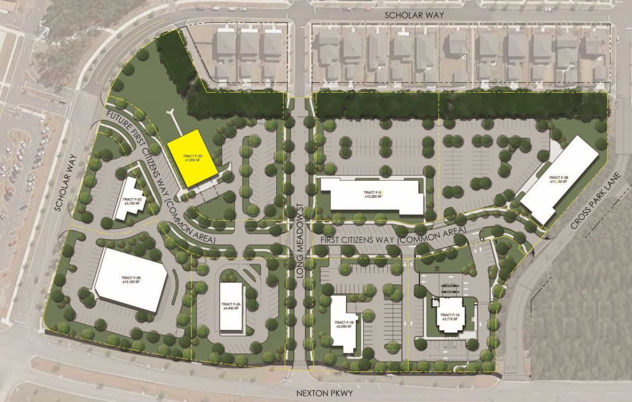 Lot F-2C - +/-1.756 AC is the last available parcel for sale in this project on Nexton Parkway. Located between the brand new Harris Teeter and Nexton Elementary School and across the street from the Publix, which is under construction. The extension of First Citizens Way is currently under construction providing excellent ingress and egress to Scholar Way, Long Meadow Street and Nexton Parkway. Nexton is a 4,500 AC master-planned community in Berkeley County with over 8,000 homes and over 1.5 million SF of retail planned at buildout. Zoning is PUD with internal construction design review for a fast-tracked approval process. Easy access to I-26 and Nexton's downtown area. Minutes to Highway 17A and downtown Summerville.