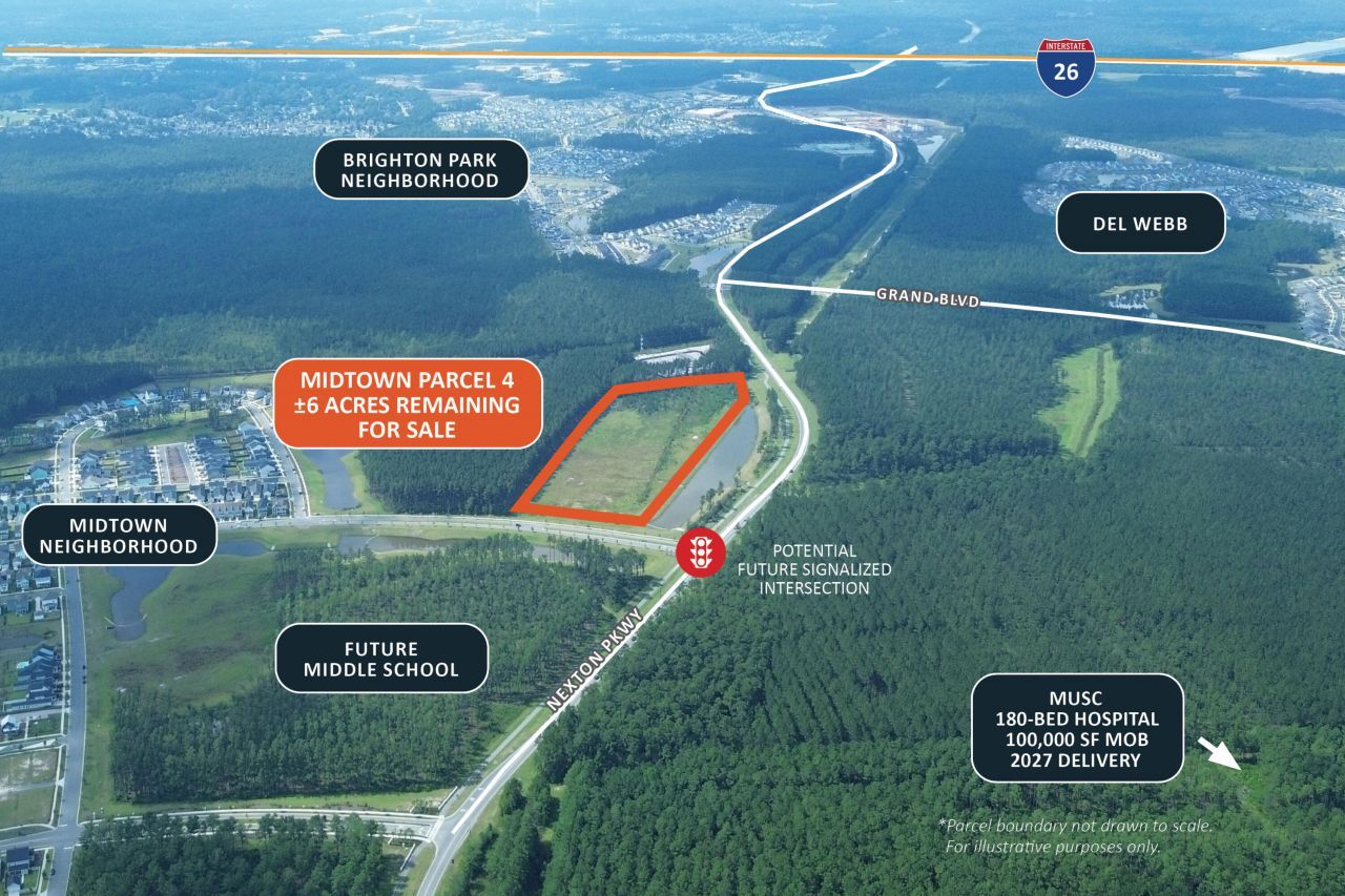 +/-6 acres developable remaining for sale in NextonPUD ZoningFull access at Blueway AvenueProximate to 30,000+ residences in Nexton, Cane Bay, Wildcat Tract and Camden Preserve.Established workplaces, medical facilities, schools, hotels and other retail centers and restaurants are nearby.Minutes to MUSC's new 180-bed hospital, 200,000 SF medical office campus that is anticipated to open in 2027.Located 25 miles from Charleston, South Carolina, which has been nationally recognized as a Top U.S. City for almost a decade.