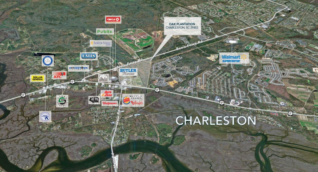 Oak Plantation provides a unique opportunity for investors to take advantage of one of the largest contiguous tracts for infill development remaining in the high growth area of West Ashley, Charleston's most populated submarket. The property features 150 acres of industrial zoned land ripe for redevelopment and includes existing road infrastructure that services a portion of the land. Situated between two major thoroughfares, Savannah Hwy (Hwy 17) and Bees Ferry Road, the available land features two stop lit corners and nearly 7,000 feet of frontage for future retail and commercial development.
