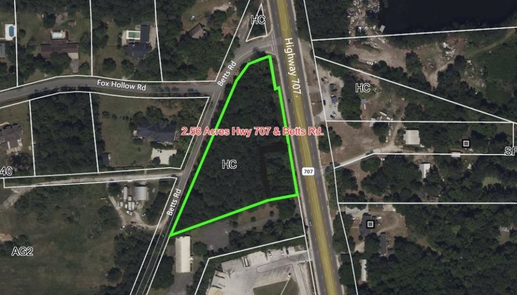Prime 2.56± Acre Commercial Corner Lot Highway 707, Murrells Inlet, SC Dont miss this outstanding opportunity to own 2.56± acres of highly visible, Highway Commercial-zoned property located along Highway 707 in Murrells Inlet. This corner lot offers excellent frontage and traffic exposure, making it ideal for a wide range of business opportunities. With great accessibility and visibility in one of the Grand Strands fastest-growing areas, this site is well-suited for retail, office, restaurant, or service-oriented development. The flexible zoning provides numerous possibilities for investors, developers, or owner-users alike. Property Highlights: Size: 2.56± acres Zoning: Highway Commercial (HC) Prime corner location with strong daily traffic counts Multiple development potential uses Convenient access to Highway 31 and nearby residential communities Call today for more information or to schedule a site visit!