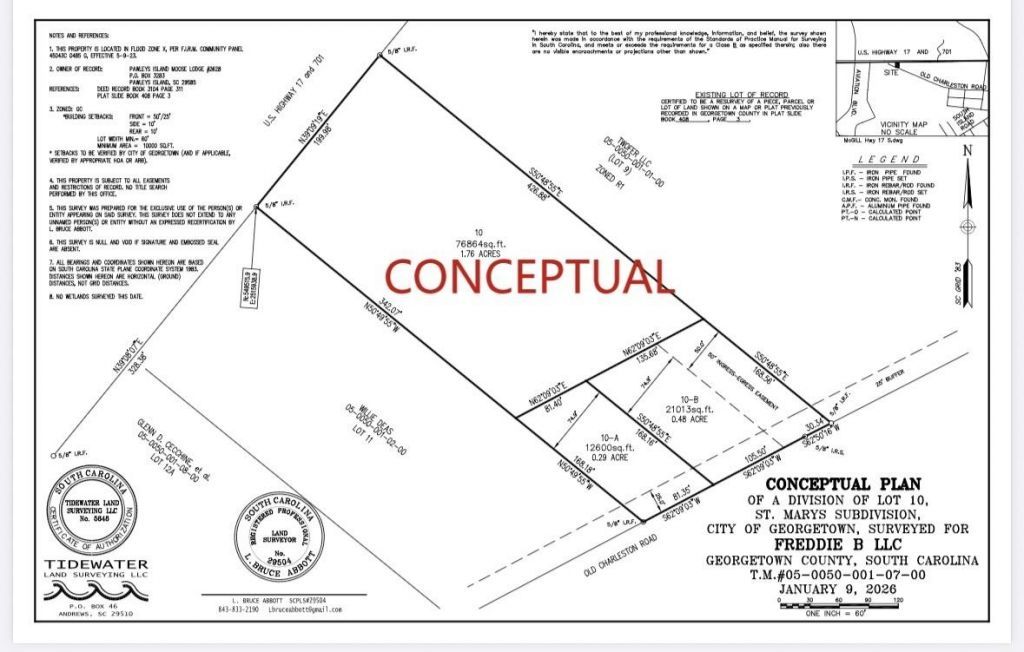 Looking to open a new business in Georgetown? This is the spot for you! Conveniently located on HWY 17 in an up and coming area of Georgetown with a new housing development just a short distance away. You will also find an unapproved conceptual plan that could be possible for subdividing. Per 2024 data, 17,400 cars per day Listing agent is one of the owners.