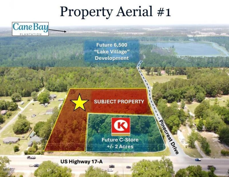 The +/-6.4-acre Subject Property is strategically located at the full-movement intersection of Pinecrest Drive and US Highway 17-A in Moncks Corner (Berkeley County TMS #: 196-00-00-008). The site consists of wooded land with substantial frontage along Highway 17-A, offering excellent visibility and access.The property is currently zoned Manufactured Residential (R-2) and is in the final reading for rezoning to Berkeley County's General Commercial (GC) District. The adjacent parcel was purchased by Circle K and planned for future convenience store and gas station development, further enhancing the commercial viability of the area.Under the GC zoning designation, the property allows for a wide range of commercial uses, including self-storage, daycare, restaurant, retail, and service-oriented businesses.Please contact brokers for more details.