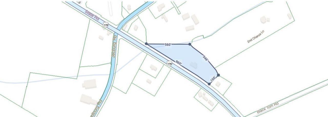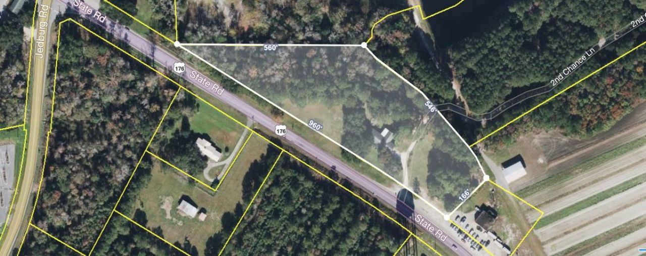Great opportunity to own one of the largest commercial-potential lots on Highway 176 between Black Tom Road and Jedburg Road. The property currently has a house on the property that could be rented or occupied. The value is in the land, but the home could be used for commercial with county approval. Buyer to verify anything deemed important. The property is zoned Flex 1 according to the tax records.